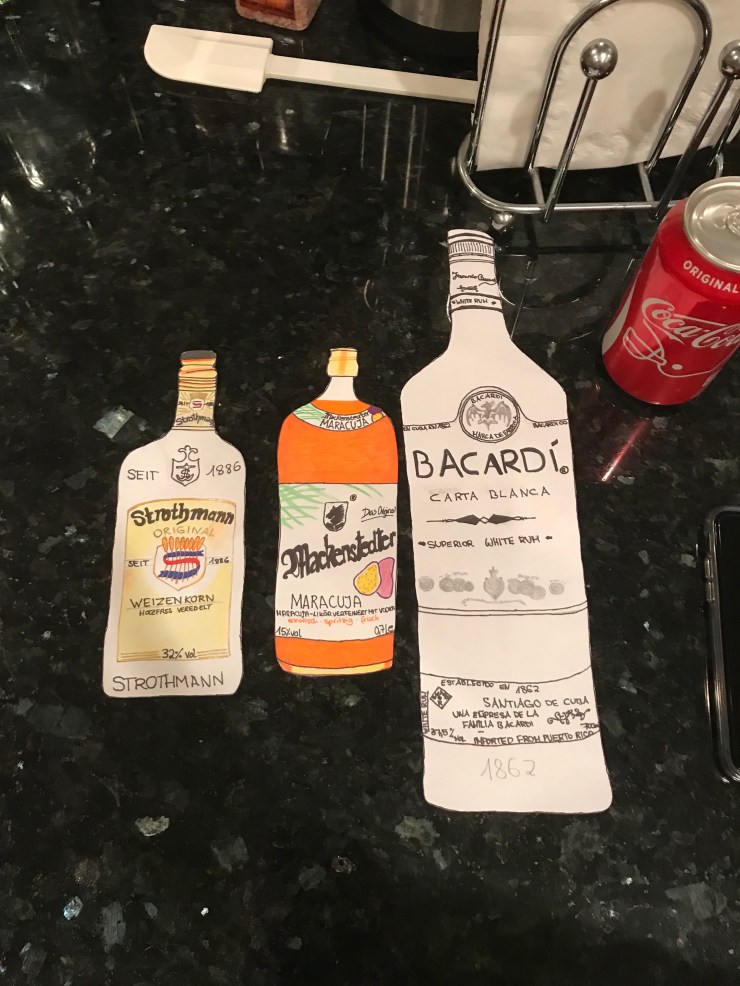 Da Au Pairs ja auch immer eine kreative Ader haben und unsere deutschen Freunde gefühlt alle auf irgendwelchen Partys oder Erntefesten waren und wir hier nicht trinken dürfen, haben wir über Alexa die passenden Songs gehört und unsere Alkoholflaschen selber aus Papier gebastelt. Ja liebe deutschen Sauffreunde auch wir hatten ohne Alkohol und ohne euch unseren Spaß🍻🎉.