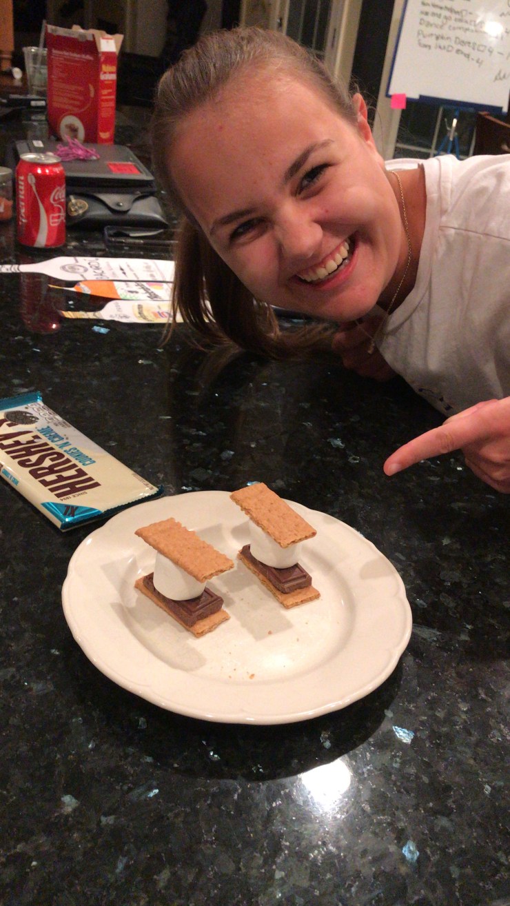 Auf dem Plan für Samstag stand dann noch S‘mores machen und da wir kein offenes Feuer nutzen wollten um die Marshmallows zu bräunen, haben wir im Internet den Tipp gelesen, S‘mores einfach in der Mikrowelle zu machen, also: Keks, Marshmallows, ein Stück Schokolade und dann nochmal Keks. Die ersten drei Versuche sind geglückt und waren auch lecker, beim vierten Versuch sind die Kekse jedoch angebrannt, wodurch zunächst die Mikrowelle und dann das ganze Haus gestunken haben. Ende vom Lied: wir haben die Fenster aufgerissen und hatten dann Angst die Hauskatze verloren zu haben, die aber zum Glück nur im Keller geschlafen hatte🤦🏽♀️😅.