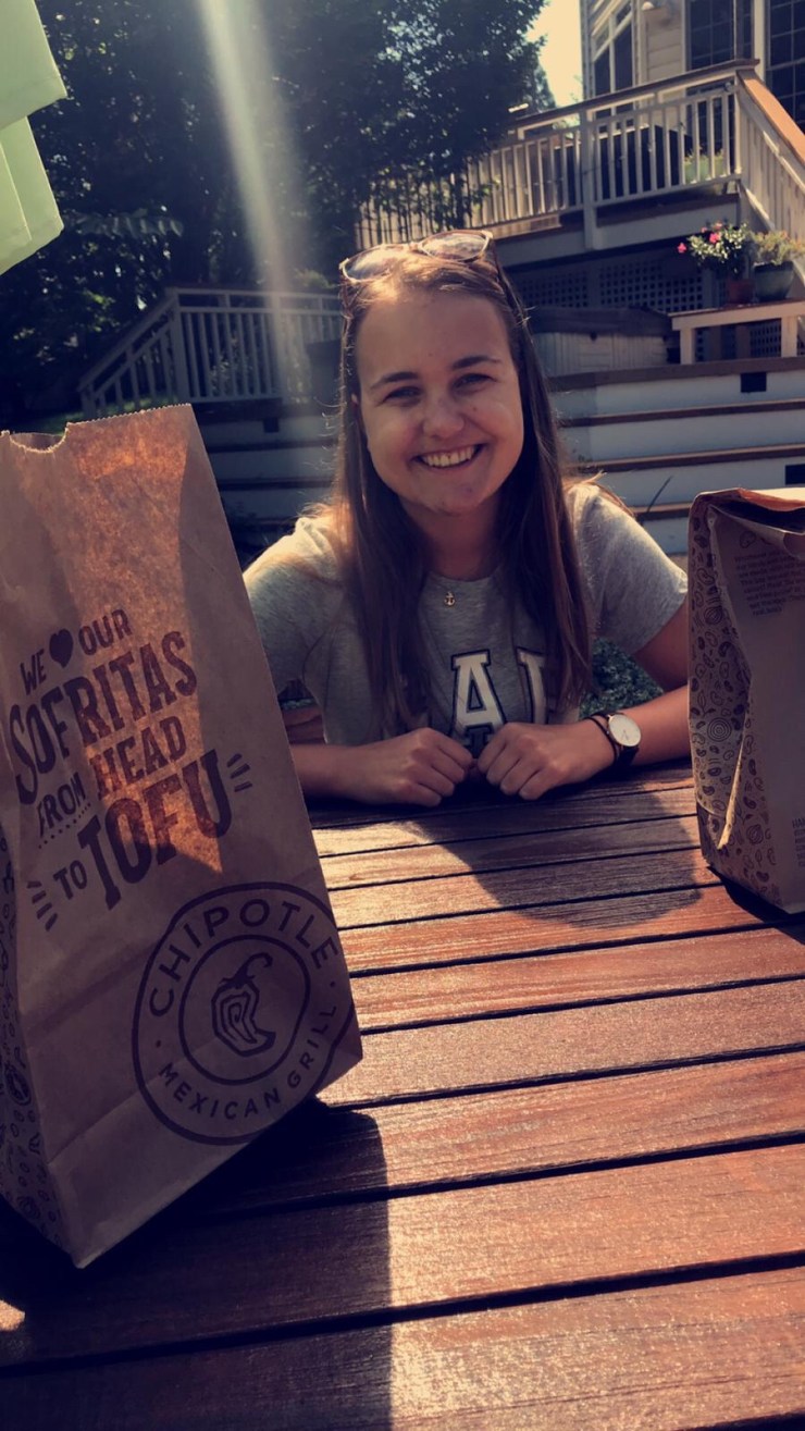Nach dem Skypegespräch sind wir dann erstmal zum nächsten Giant und haben alles nötige fürs Wochenende eingekauft: ganz viel Süßes, Tostitos und die Zutaten, die wir für die geplanten S‘mores brauchen🍬🍫. Da wir danach schon wieder Hunger hatten (wer hätte das gedacht), haben wir uns Burritos bei Chipotle geholt🌯. Eine weiter Empfehlung: probiert in den USA unbedingt Chipotle, eine mexikanische Kette, aus. Ihr könnte euch dort euren eigenen Burrito oder eure Bowl selber zusammen stellen mit verschiedenen Reisarten, Hähnchen, Mais, Käse, Salsa und anderen verschiedenen Soßen und vielem mehr. Bei Emmi wieder angekommen, haben wir uns dann mit unseren Burritos an den Pool in die Sonne gesetzt und mussten feststellen, dass der Burrito ganz schön scharf ist.
